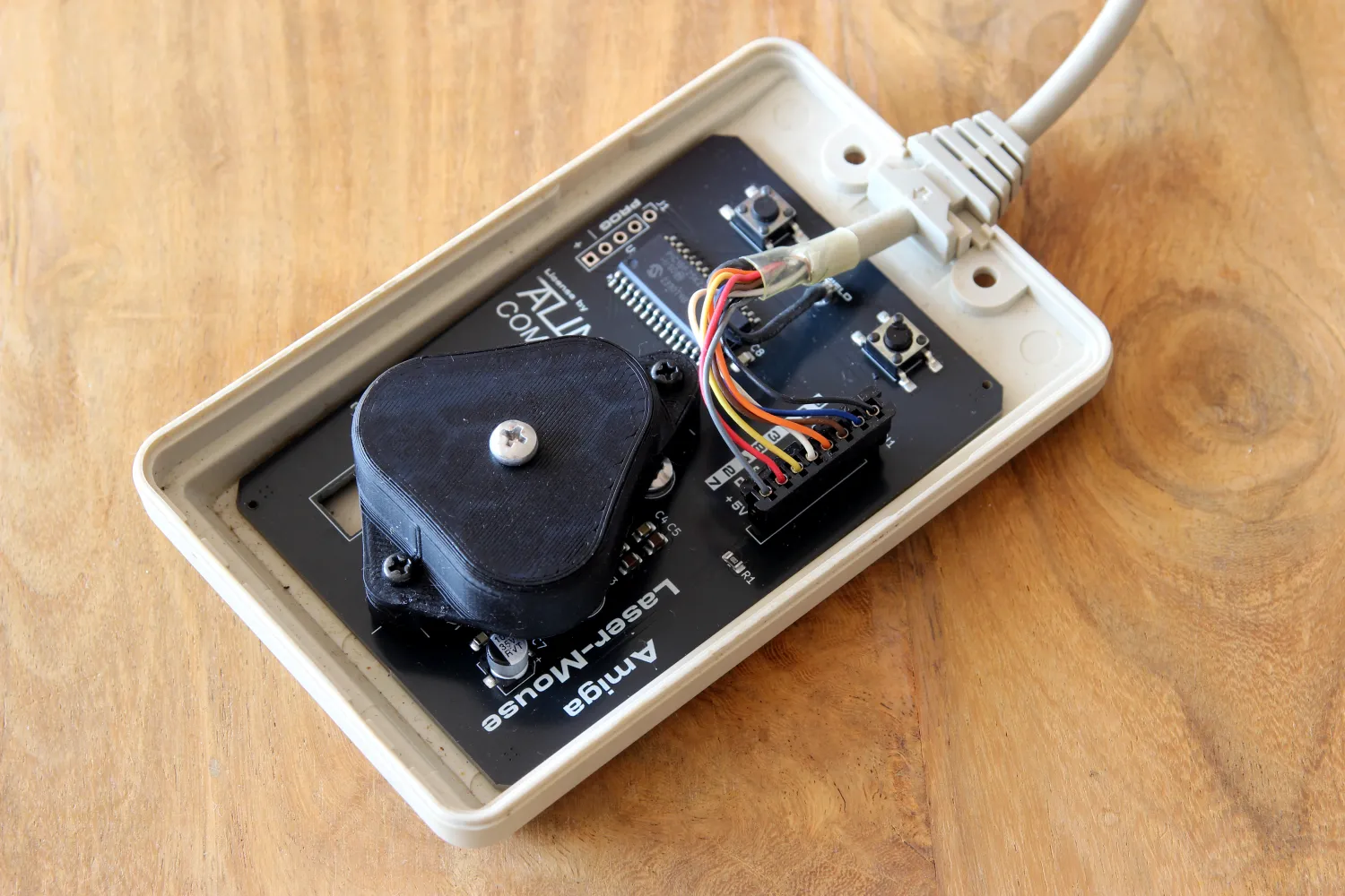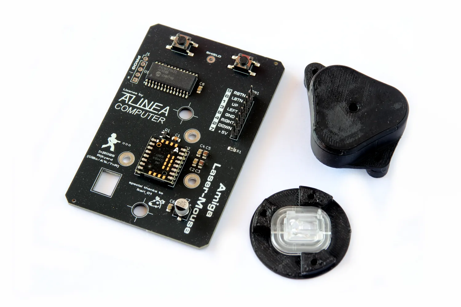 Die Amiga Laser Maus ist ein Umbaukit, um eine herkömmliche Amiga Tank Kugelmaus in eine moderne optische Maus mit verschiedenen Auflösungen zu verwandeln. Die Sensibilität streckt sich von 50 bis 8.200 cpi (3.400 cpi ist Standard und kann umgestellt werden).