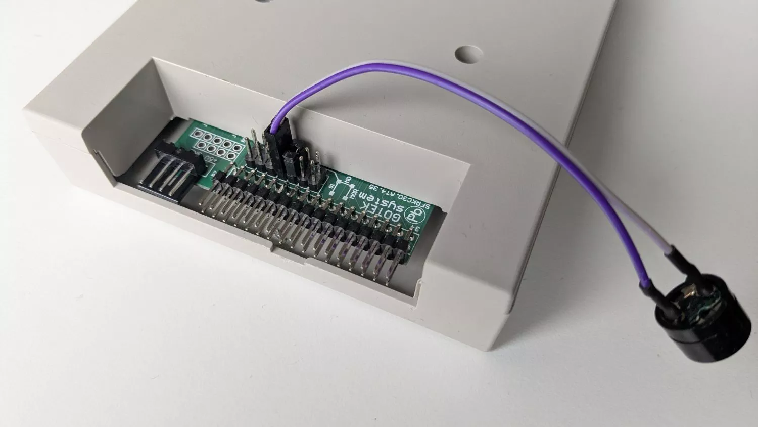 It is connected internally or externally instead of the floppy drive and makes the Amiga look like a floppy drive. From there you can then ADF files from a USB flash memory stick treat them like floppy disks. So the Gotek USB floppy emulator is ideal for computer players on the Amiga who don't want to load their Amiga games from floppy disks anymore but like to play floppy games.